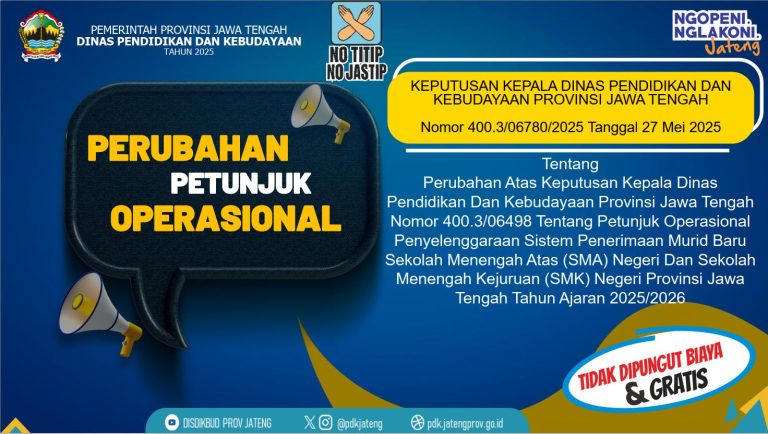 Assalamu’alaikum warahmatullahi wabarakatuh Diberitahukan dengan hormat, bahwa berdasarkan Surat Edaran Dinas Pendidikan dan Kebudayaan Provinsi Jawa Tengah Nomor 400.3.8/71/2025...